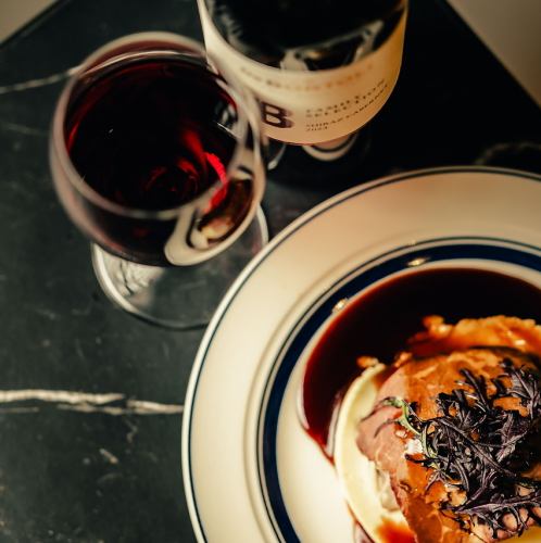 The slow-cooked roast of domestic beef brings out the natural flavor of the meat and its moist texture. The special sauce, made by slowly simmering red wine, adds a mellow aroma and deep richness.The moment you put it in your mouth, the rich flavor spreads, creating an exquisite balance of elegant acidity. This dish is perfect as the main dish for anniversaries, girls' nights, or special dinners!